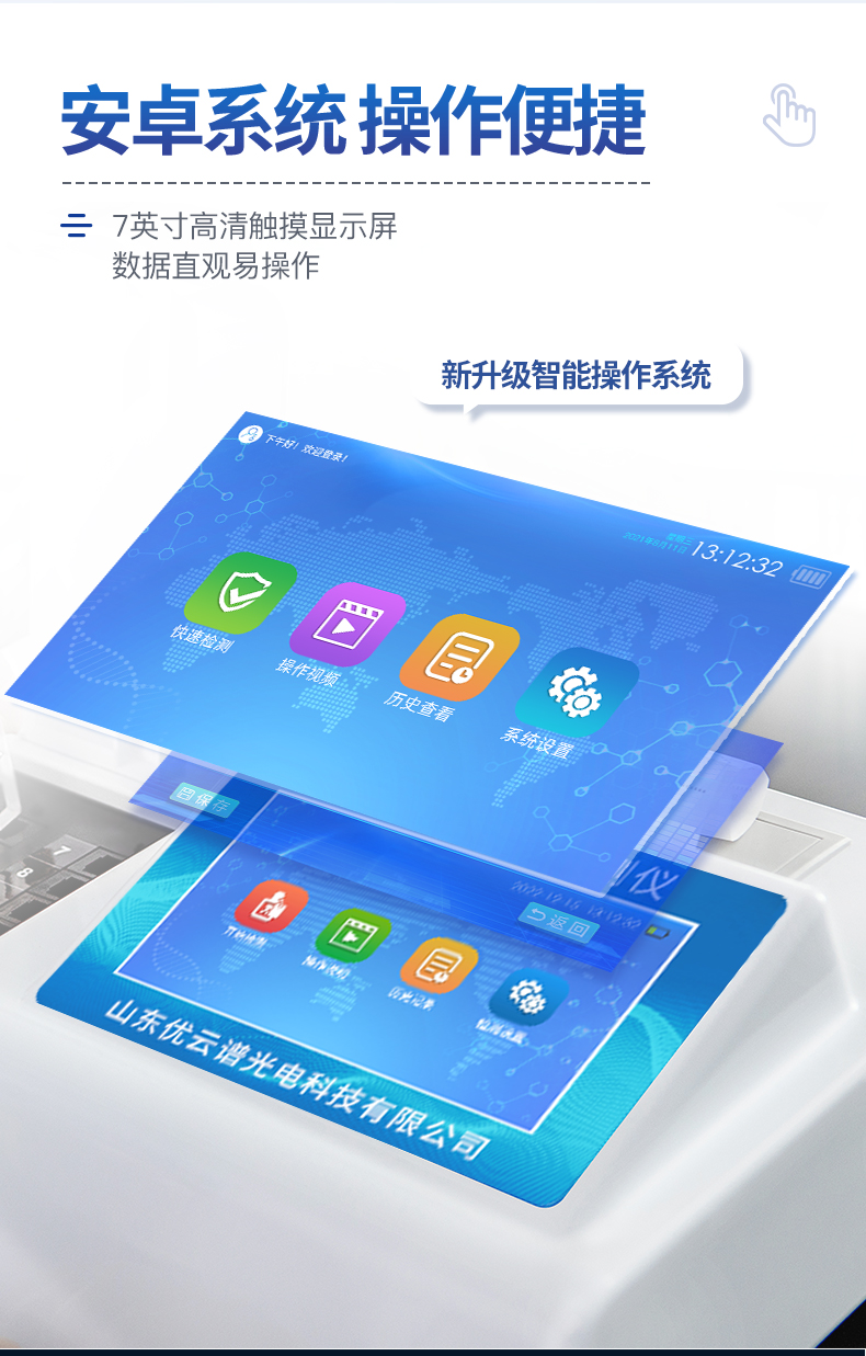 3、 显示方式:7英寸液晶触摸屏显示,人性化中文操作界面,读数直观、简单。