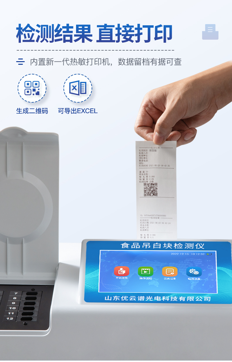 4、 配备嵌入式热敏打印机,可选择手动打印或者自动打印,三分钟出打印结果。
