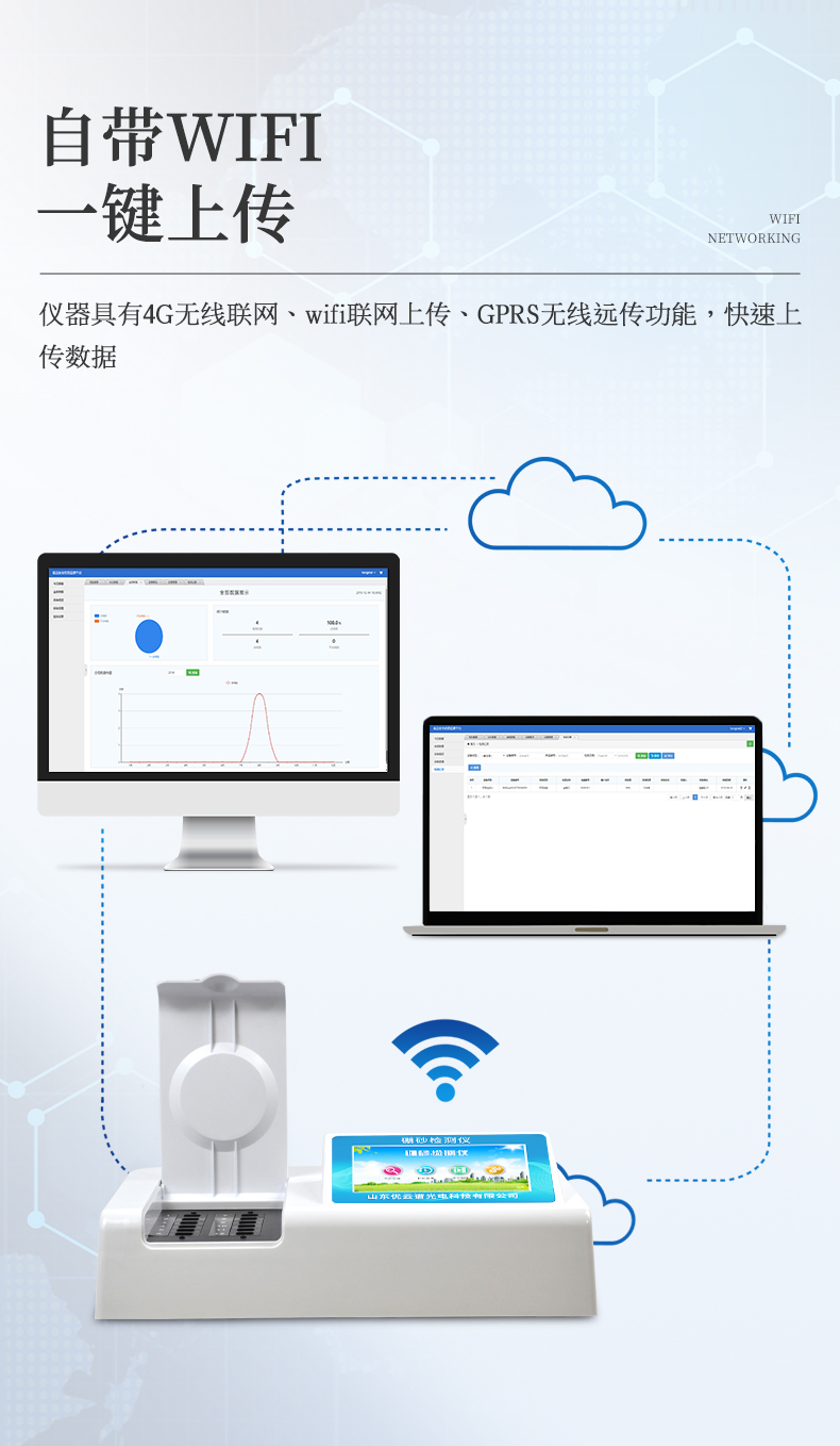 1、安卓智能操作系统,采用更加高效和人性化操作,仪器具有网线连接、wifi联网上传、GPRS无线远传功能,快速上传数据。