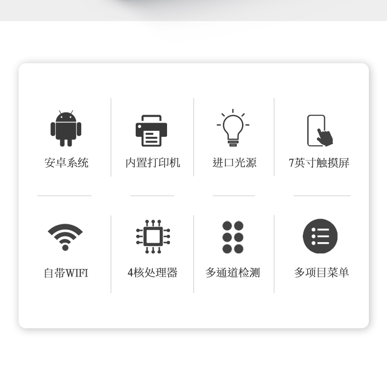 6、光源采用进口超高亮发光二极管,高精度、稳定性强、光源可控、可以关掉不使用的光源,功耗更低。